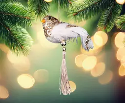 Ёлочное украшение Птица белая с золотистым, 12×5×15см