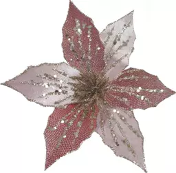 Ёлочное украшение Цветок на клипсе розовый, 17см