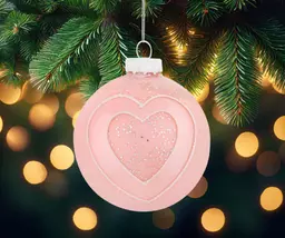 Ёлочное украшение Шар с сердцем розовый, 8см