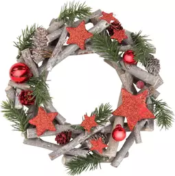 Венок новогодний с красными звёздами, 22см