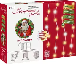 Гирлянда электрическая Glos Led занавес с тёплым-холодным светом-240 лампочек, 2×1.5м