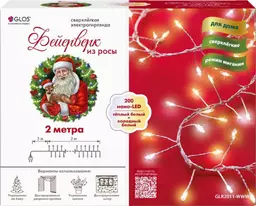 Гирлянда электрическая Glos Led нить-фейерверк с тёплым-холодным светом-200 лампочек, 2м