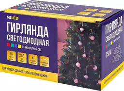 Гирлянда электрическая Miled нить с мульти светом-250 лампочек, 25м