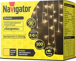 Гирлянда электрическая Navigator бахрома с тёплым светом-100 лампочек, 2м