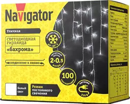 Гирлянда электрическая Navigator бахрома с холодным светом-100 лампочек, 2м