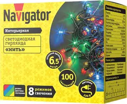 Гирлянда электрическая Navigator нить с мульти светом-100 лампочек, 6.5м