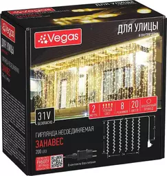 Гирлянда электрическая Vegas Led занавес с тёплым светом-200 лампочек, 2×2м