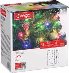 Гирлянда электрическая Vegas Led нить с мульти светом-300 лампочек, 30м