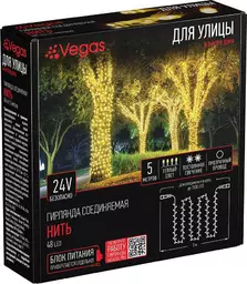 Гирлянда электрическая Vegas Led нить с тёплым светом-48 лампочек, 5м