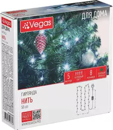 Гирлянда электрическая Vegas Led нить с холодным светом-50 лампочек, 5м