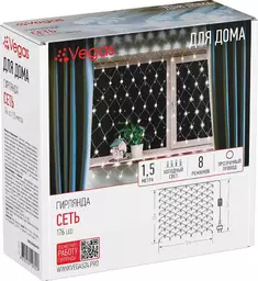 Гирлянда электрическая Vegas Led сеть с холодным светом-176 лампочек, 1.5×1.5м