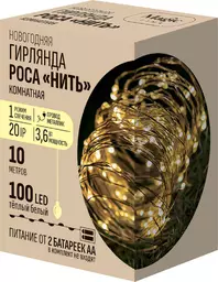 Гирлянда электрическая Феникс Презент Led нить-роса с тёплым светом-100 лампочек, 10м