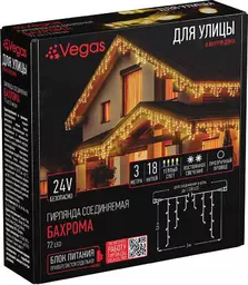 Гирлянда-конструктор электрическая Vegas Led бахрома с тёплым светом-72 лампочки, 3×0.6м
