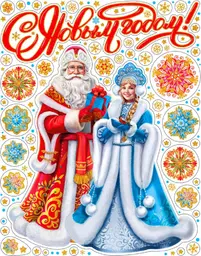 Набор наклеек новогодних Феникс Презент Дед Мороз и Снегурочка, 30×38см