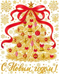 Набор наклеек новогодних Феникс Презент Золотая ёлка, 30×38см