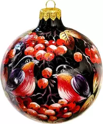 Ёлочное украшение Evis Шар Снегири, стекло, 9.5см