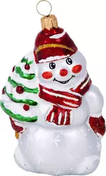 Ёлочное украшение Ёлочка Снеговик с ёлкой, стекло, 8.2см