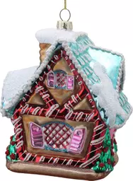 Ёлочное украшение Домик мультиколор, стекло, 14см