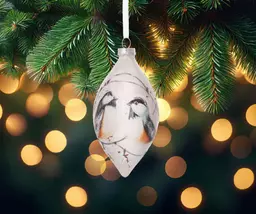 Ёлочное украшение Капля с орнаментом. Птички, стекло, 13см