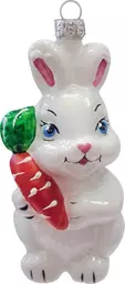 Ёлочное украшение Коломеев Зайчик с морковкой, стекло, 11см