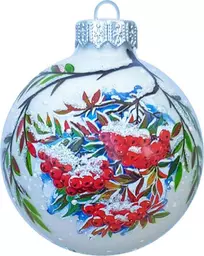 Ёлочное украшение Коломеев Снежная рябина, стекло, 8см