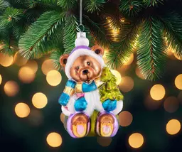 Ёлочное украшение Мишка с ёлкой коричневый, стекло, 13см