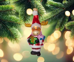 Ёлочное украшение Олень с подарком мультиколор, стекло, 14.7см