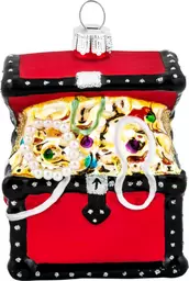 Ёлочное украшение Сундук красный, стекло, 9.2см
