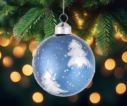 Ёлочное украшение Шар с ёлочками синий, стекло, 8см