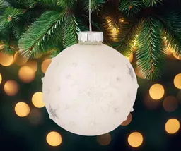 Ёлочное украшение Шар со снежинками белый с серебряным, стекло, 8см