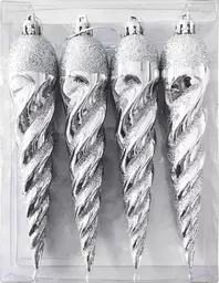 Набор ёлочных украшений Сосульки серебристые, 15см×4шт.