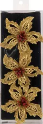 Набор ёлочных украшений Цветы золотистые с красным, 9см×3шт.