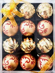 Набор ёлочных украшений Шары золотистые с красным напылением, 6см×12шт.