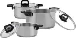 Набор посуды Fold&keep-6s цвет: серый, Классика, набор кастрюль из нержавеющей стали со стеклянными крышками, 6предметов