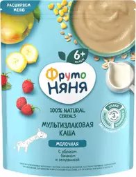 Каша мультизлаковая молочная Фрутоняня яблоко-банан-земляника с 6 месяцев, 200г