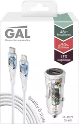 Зарядное устройство автомобильное Gal Pd30w с кабелем Type-c-8pin, 1м
