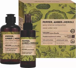 Подарочный набор Vegan.love.studio Pepper, Amber & Neroli (гель для душа, спрей для тела), 2 пр
