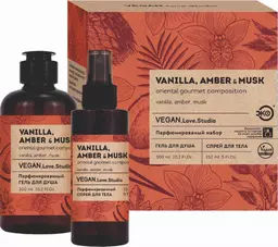 Подарочный набор Vegan.love.studio Vanilla, Amber & Musk (гель для душа, спрей для тела), 2 пр