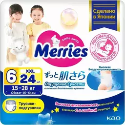 Подгузники-трусики Merries Xxl (15-28 кг), 24шт.