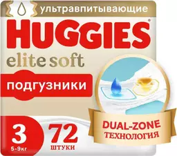Подгузники Huggies Elite Soft 3 (5-9 кг), 72шт.