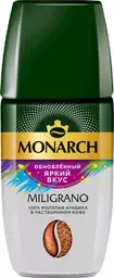 Кофе растворимый сублимированный Монарх Miligrano c добавлением кофе жареного молотого, 160г