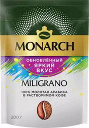 Кофе растворимый сублимированный Монарх Miligrano c добавлением кофе жареного молотого, 200г