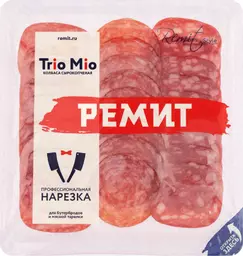 Колбаса сырокопчёная Ремит ассорти Trio Mio для бутербродов и мясной тарелки, нарезка, 100г