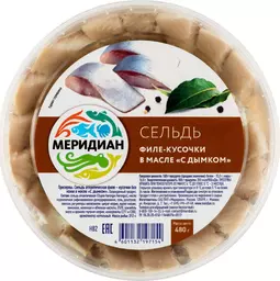 Сельдь Меридиан филе-кусочки в масле с дымком, 480г