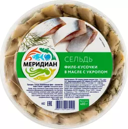Сельдь Меридиан филе-кусочки в масле с укропом, 480г