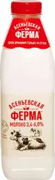 Молоко цельное Асеньевская ферма 3.4-6%, 900мл
