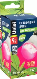 Фитолампа для растений Led Uniel E27 груша, 9Вт