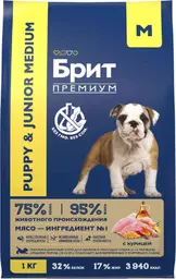 Сухой корм для молодых собак средних пород Брит Премиум Junior M курица,1кг