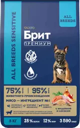 Сухой корм для собак с чувствительным пищеварением Брит Sensitive индейка-лосось,8кг