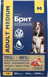 Сухой корм для собак средних пород Брит Премиум Adult M индейка-телятина,1кг